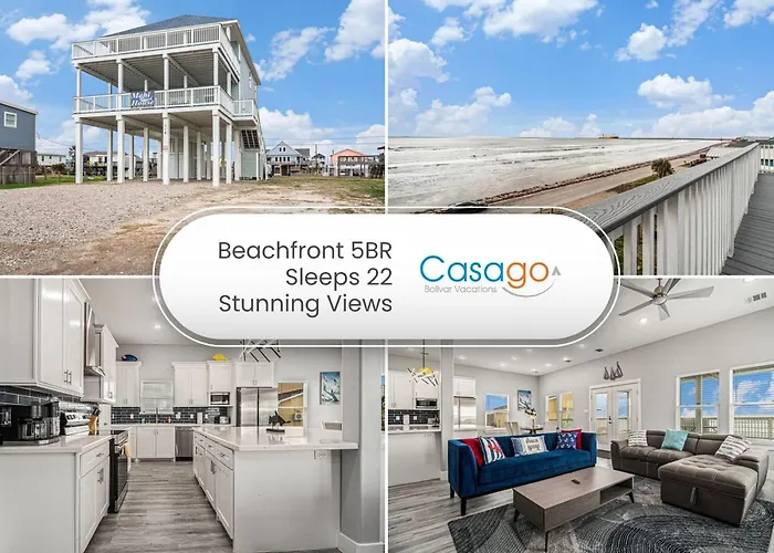 A pousada Luxury Beachfront Family Fun Sleeps 22 está equipada com máquina de café/chá, refrigerador e utensílios de cozinha numa cozinha equipada. Jetty Shack é o bar que serve culinária Amerikaanse a uma pequena distância da acomodação de Surfside Beach.